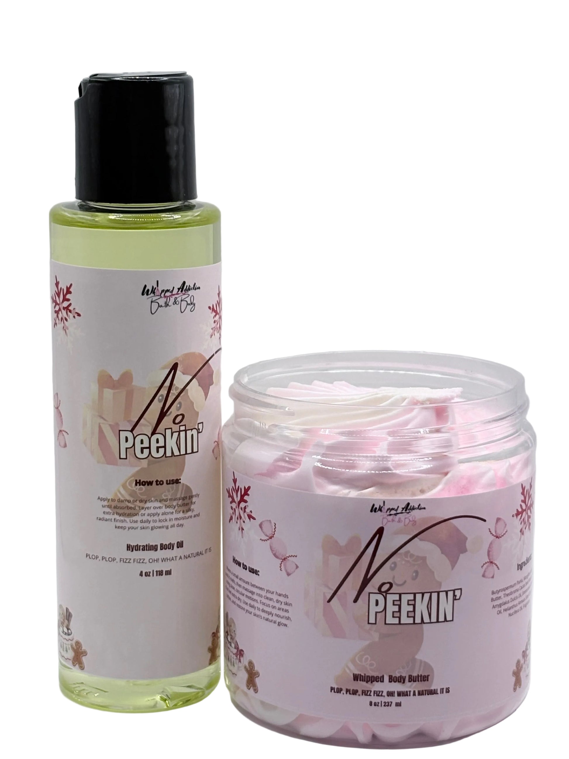 The No Peeking Bundle brings together rich hydration and bright, fruit-forward holiday cheer. This duo gives your skin everything it needs during the colder months: nourishment, shine, and a vibrant winter scent that feels joyful and fun.